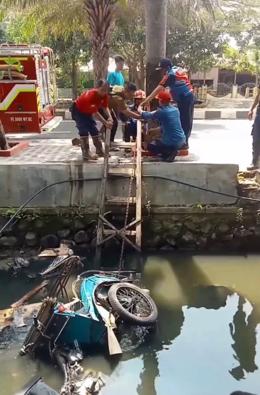 Proses evakuasi menjadi tontonan warga. Dengan menggunakan tali dan peralatan khusus, tim Damkar bekerja sama untuk mengangkat cator dari dalam selokan. Setelah perjuangan yang gigih, mereka berhasil menarik kendaraan roda tiga itu ke atas.