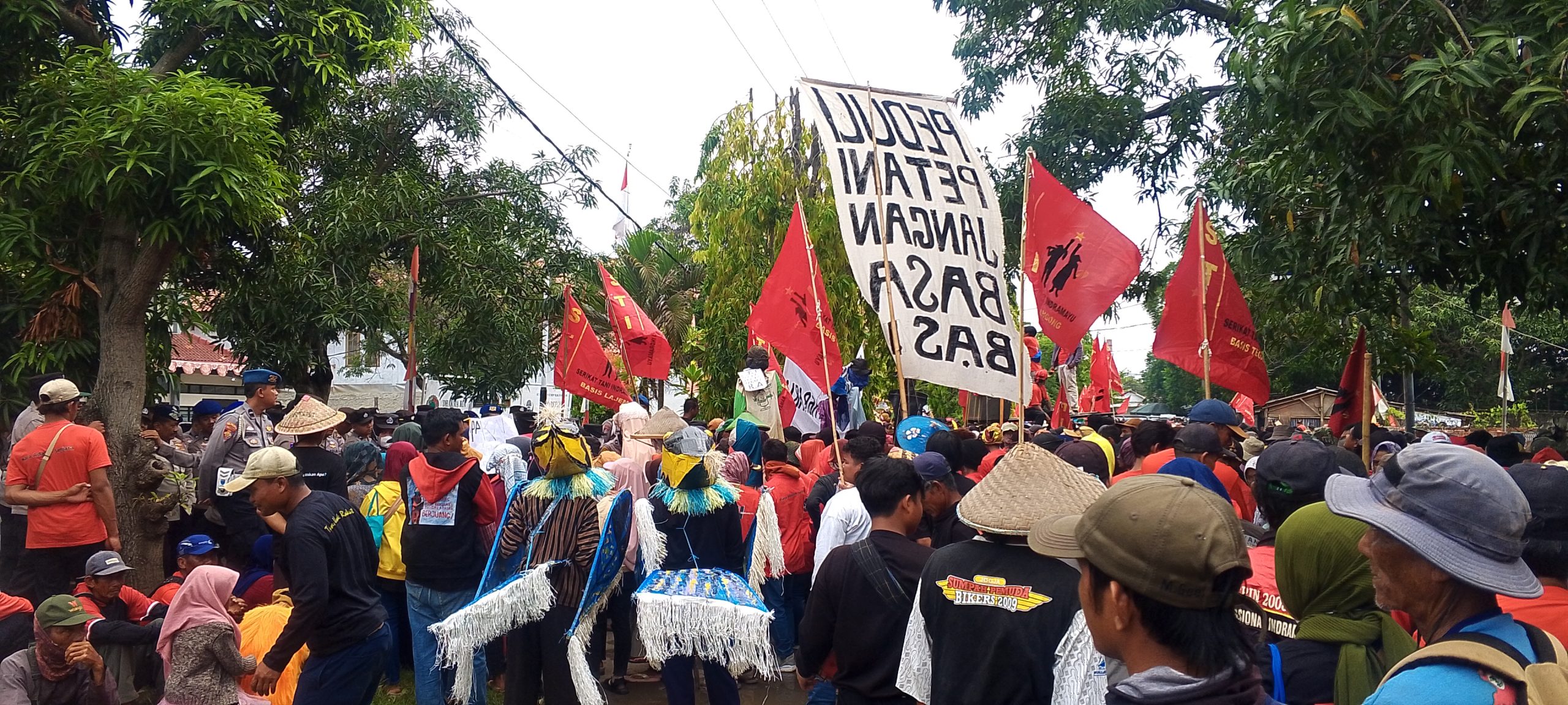 Dengan membawa replika alat-alat pertanian dan menampilkan kesenian khas Indramayu, para petani menyuarakan “TriTuraNi” (Tiga Tuntutan Rakyat Tani) yang menjadi inti dari aksi mereka: