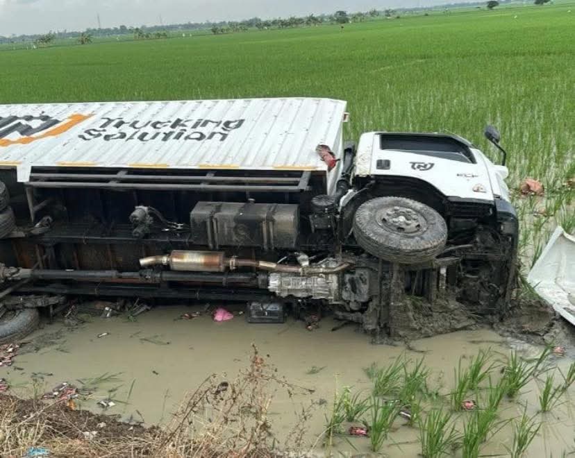 “Saat mencoba menyalip, pengemudi terlalu mepet ke bahu jalan hingga menabrak pohon, dan akhirnya truk kehilangan kendali serta terperosok ke sawah,” jelas salah satu petugas kepolisian di lokasi.