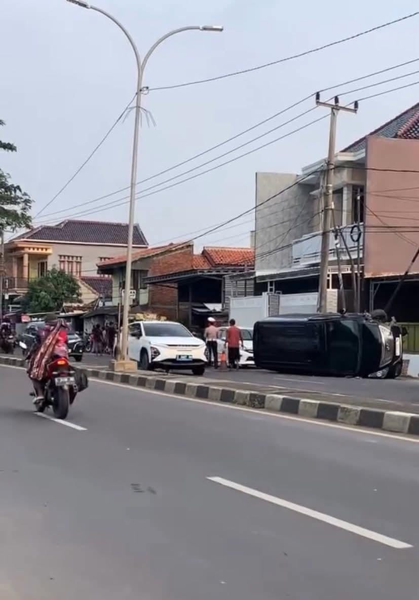 Setelah menabrak odong-odong, mobil Hyundai tersebut hilang kendali, lalu menabrak tiang listrik di sisi jalan, dan akhirnya terbalik di pinggir jalan.